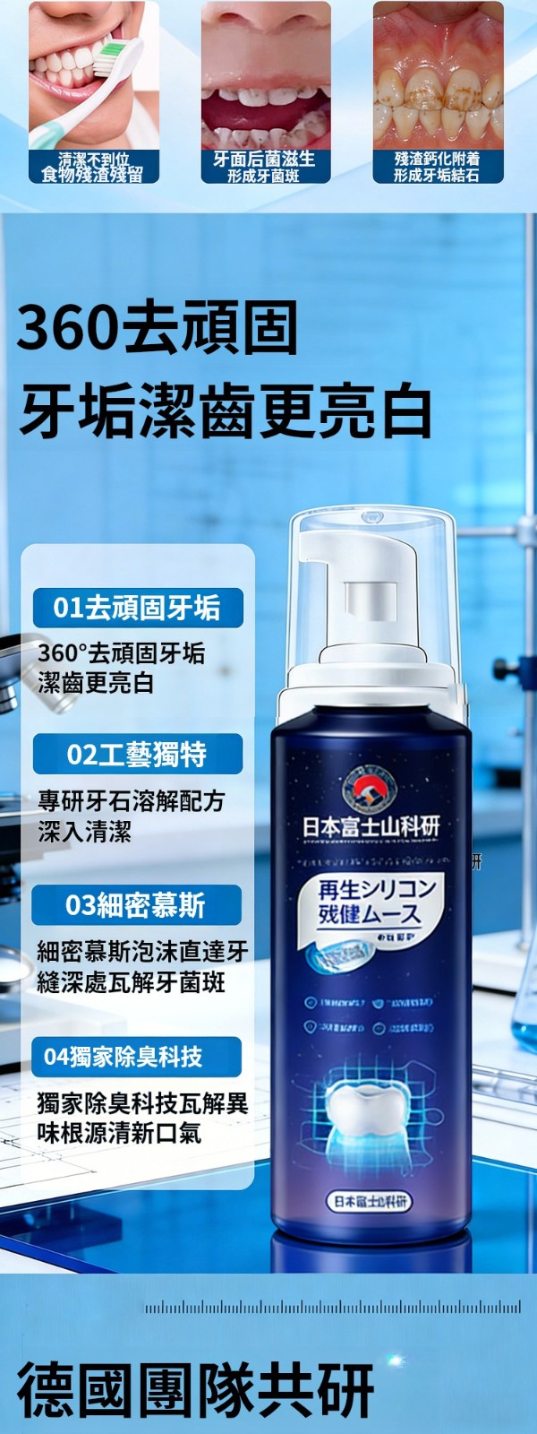 4分鐘前【日本專研】日本富士山製藥,潔牙健齒清潔慕斯,專攻牙石,30秒速溶解,清潔去牙石、溫和0刺激、去牙斑牙清、清新除口臭,免洗牙,德國技術、四大專利科研項目成果,攜手海外醫藥集国Global-X口腔博士專研,日系高標準護酿,牙石越多越明顯,牙黃、牙垢、牙漬強效清潔!!! - 【日本專研】日系高標準護齦牙石牙黃牙漬速溶解 4入組NT$1298