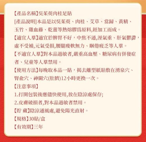 5分鐘前古法熬製吳茱萸肉桂貼,以草本溫性配方貼敷足心,引火下行、溫通三焦,讓你一夜好眠、身心舒暢 - 【通三焦 | 解鬱堵】買一送二(60貼/盒) NT$999