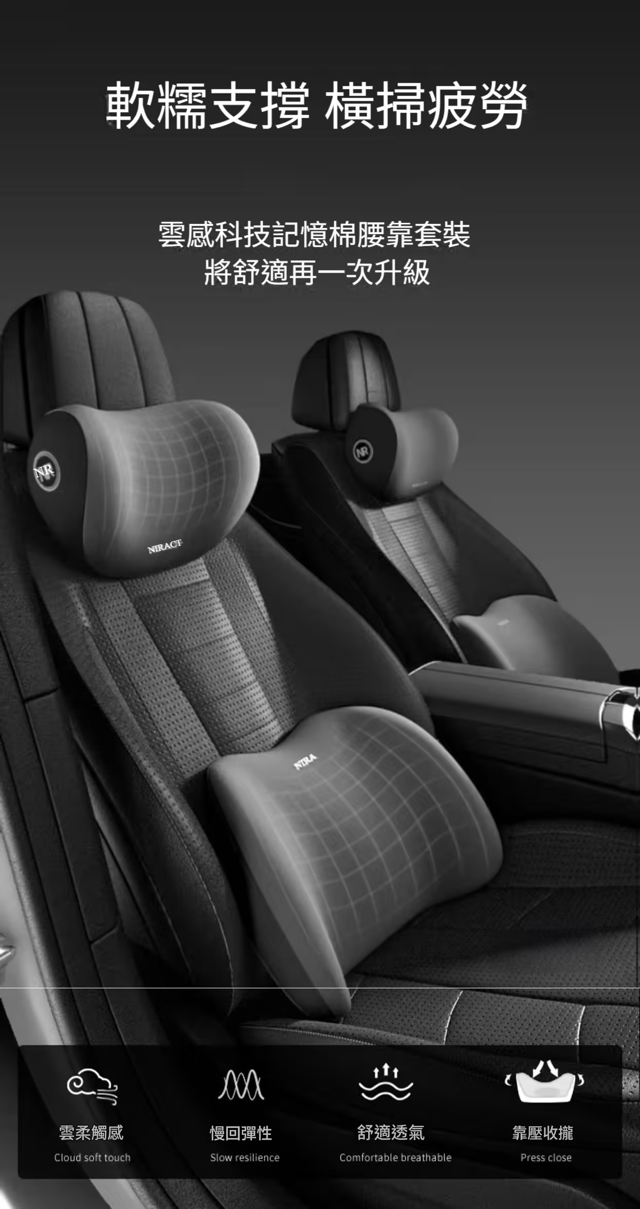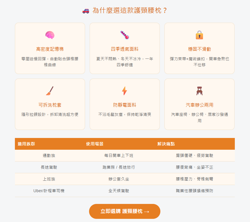【開車不累,才是真的放鬆 🚗✨】 雲感記憶棉護頸靠墊組,給你「雲端般的支撐」。 ✔ 零壓迫感,長途開車不痠痛 ✔ 雙凹弧設計,穩穩托住頭頸腰 ✔ 四季透氣面料,不悶熱不沾毛髮 開車族必備,享受每一公里的舒適!